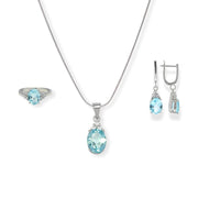 Elegant Pakistani Blue Topaz and Zircon Jewelry Set – Exquisite Oval Gems, Timeless Design
